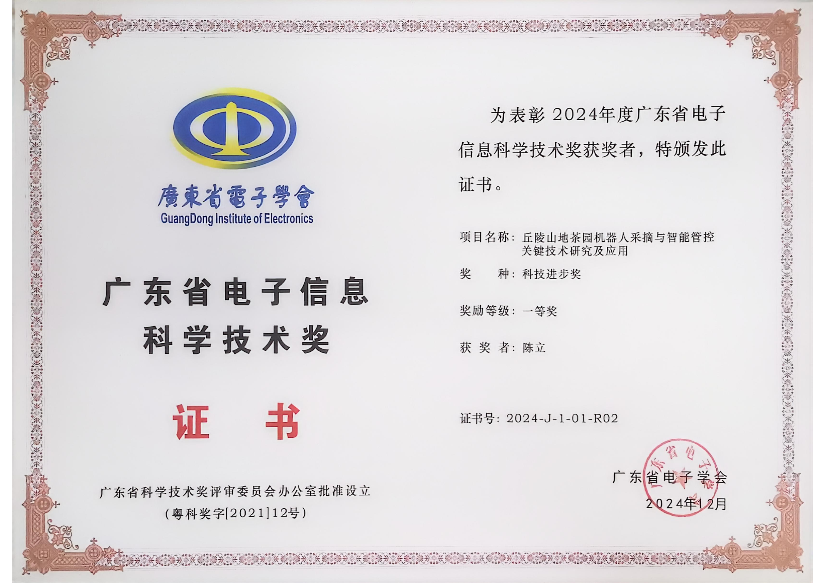 • The First Prize of Guangdong Province Award for Electronic Information Science and Technology 2024 (2024年度广东省电子信息科学技术奖一等奖).